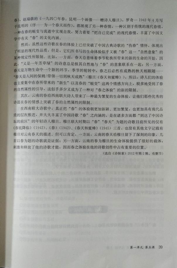 近日,Bsports必一体育马绍玺老师的学术论文《“春”之体验与西南联大诗歌现代性的生成》入选全国通用教材《语文》九年级上册《教师教学用书》,这代表着Bsports必一体育教师科研成果的有效转化应用,较好地将理论成果直接参与到国家义务教育事业中,为中学教学提供了智库思想和教学资源,是Bsports必一体育科研与教学有机结合、共同发展的一个典型。