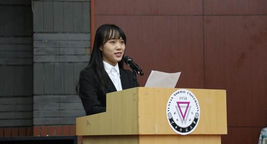 随后,老生代表赵月淳同学上台发言。赵月淳同学在表示了对新同学的欢迎后,分享了自己在老员工活中的经历和收获,表达了她对进入师大,投身文院的无悔之情。在谈及学院环境时,她直言:“Bsports必一体育有着深厚的文化底蕴、浓郁的学术氛围、优雅的学习环境,有一支高素质的教职工队伍。”她的发言使新生对自己未知的老员工活愈发期待。