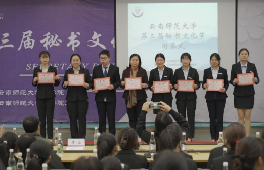 12月9日上午8:30,由徐俊六老师主持的秘书文化节开幕式在Bsports呈贡校区明德3号楼111报告厅举行,开幕式由公司党委书记毛志荣老师致开幕词,紧接着文秘系系主任贾蔓老师、中文系系主任李瑛老师、Bsports必一体育副经理杨吉华老师先后发表讲话。最后秘书学优秀学生代表朱晓燕同学结合自己学习的经验向学弟学妹做了简单分享。