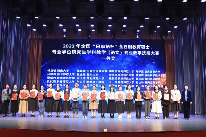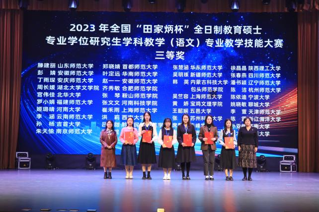 2023年全国“田家炳杯”全日制教育硕士专业学位研究生学科教学(语文)专业教学技能大赛决赛于10月15日在长春师范大学落下帷幕。学院谭晓云教授作为受邀评委参与本次大赛评委工作。学院2022级学科教学(语文)专业硕士研究生蔡松芮和李涵同学,在成巧云教授带领下,奔赴长春师范大学参加全国总决赛,并从153名选手中脱颖而出,分别荣获全国总决赛一等奖和三等奖。