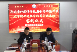 随后,昆明市外国语学校董事长李文介绍了学校的基本情况。据悉,昆明市外国语学校是昆明市教育体育局直属的公办一级学校,是云南省唯一的一所公办外语类学校。学校现开设有小学部、初中部、高中部、国际部及泰语课程中心。近年来一本上线率稳步提升,正向着一级一等完中的目标稳步迈进。李董事长希望双方能进行更多交流合作,实现互利多赢,优化“联合培养实践基地”的内容,创新联合培养模式,力争打造联合培养品牌。