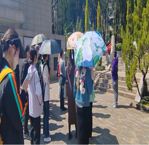 师生们走进西南联大旧址,简陋的铁皮教室、烈士墓、纪念碑等遗迹一一映入眼帘。讲解员为师生们讲述了在烽火连天的战争岁月中,西南联大师生“教育救国”“读书报国”的可歌可泣感人故事。在参观过程中,同学们详细了解到西南联大辉煌的办学历史,领悟到西南联大“刚毅坚卓”的办学精神,感受到西南联大师生浓厚的家国情怀。大家纷纷表示,凡是云师大学子,都应当争做西南联大精神的传承者,把西南联大的故事一代代讲下去,让爱国主义精神成为中华民族伟大复兴事业中源源不断的力量源泉。