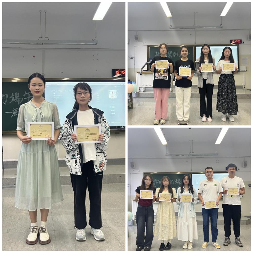 各班级精心布置活动现场,积极准备诗词诵读节目,严谨地进行奖项评选,确保公平公正地评价参赛选手的每一份努力。同时各班级还根据同学特点和爱好创新性地开展了抽奖、抢答、制作香囊、包粽子、画端午海报等活动。活动现场气氛热烈,大家都积极参与,现场欢声笑语不断,同学们真正感受到了“班级就是家”“学院就是家”的温馨氛围。爱班级、爱学院,是文院学子的共同追求。