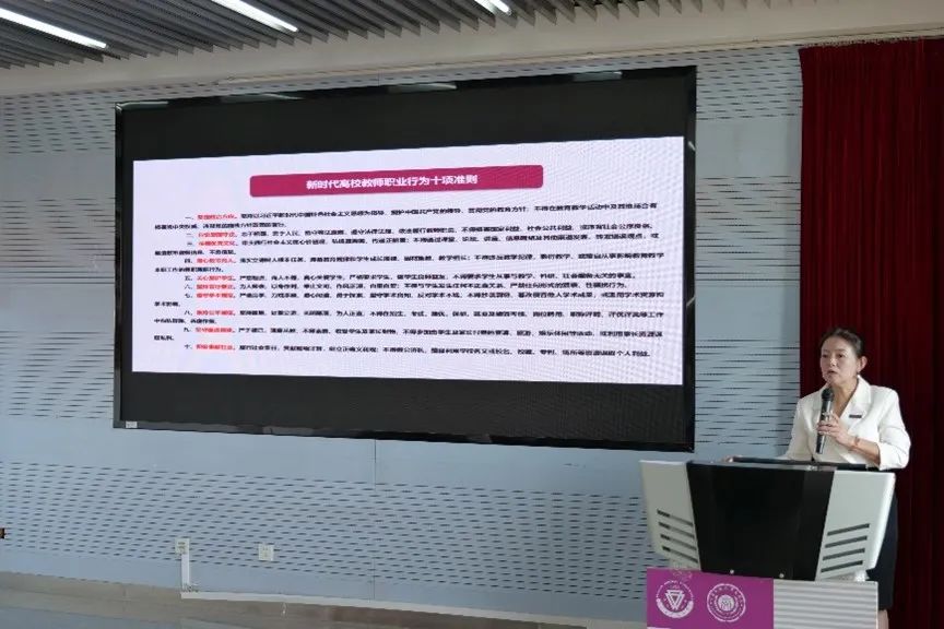 刘虹老师从近年来全国各高校违反师德师风的典型案例入手,涉及损害党的权威与违背党的方针政策的言行,损害国家利益与公共利益,散布虚假信息及不良信息,违反教学纪律,要求员工从事与教学、科研、社会服务无关的事宜等内容,警示教职工在工作生活中要牢固树立底线意识,严守师德底线,恪守职业规范。