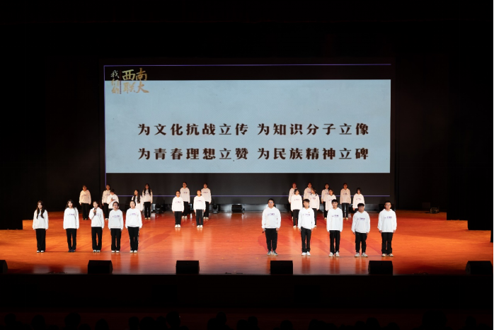 陈寅恪班《中华教育的传奇》带观众走进那段艰难而又辉煌的历史,感受西南联大师生教书救国、读书报国的爱国情怀。罗庸班的同学们以《战火校歌中的华夏气韵》演绎联大师生在烽火岁月中对国家、对民族深厚的热爱之情。