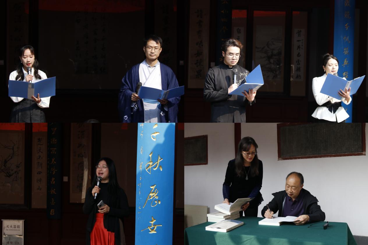 校注团队朗诵《王思训诗文辑注》中首次译注的《庐山吟》,让百年前的壮秀山河在声韵中复现;国家非遗“常州吟唱”传人演绎《陋室铭》,使千年前的文人德馨在精神中传承;骆锦芳教授以其原创诗歌《追赶太阳的民族》将现代与历史碰撞,颂出“追日巨人,与国无疆”的高歌。最后,本次文化盛会以骆锦芳教授的签赠仪式落下帷幕。