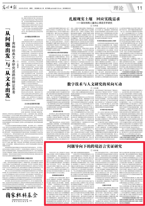 4月30日,《光明日报》(2025年04月30日第11版)“国家社科基金”专栏刊发了公司余金枝教授的理论文章《问题导向下的跨境语言实证研究》。该文以边疆科研工作者视角,从“着眼国家战略需求”“聚焦学术前沿和学术创新”“注重学术积累”三个方面展开阐述。